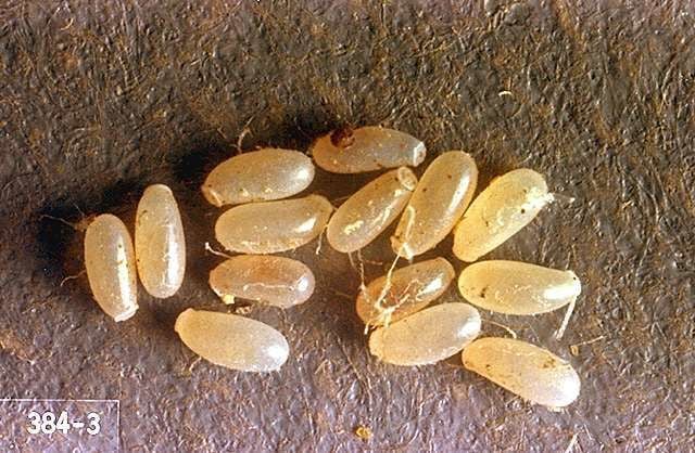 - Eggs: Females lay 1–5 eggs per day depositing them with a clear adhesive in cracks, seams, and harborage sites. Bed bug eggs are 1 mm long, white, and extremely difficult to see without magnification. They are immune to most residual insecticides applied to surfaces, hatching nymphs emerge into a treated environment and must directly contact treated surfaces.